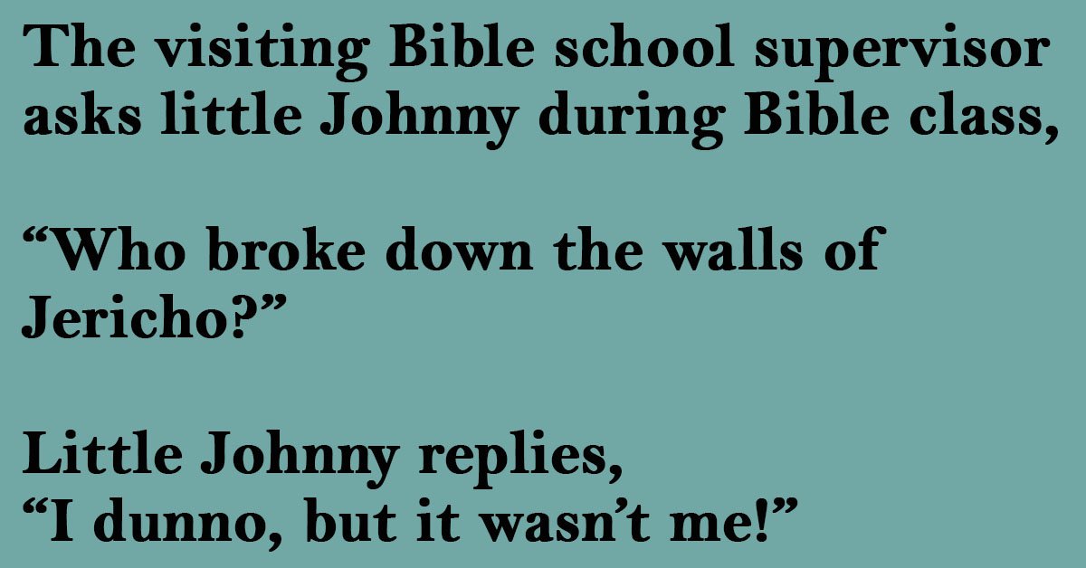 The visiting Bible school supervisor asks little Johnny during Bible class,