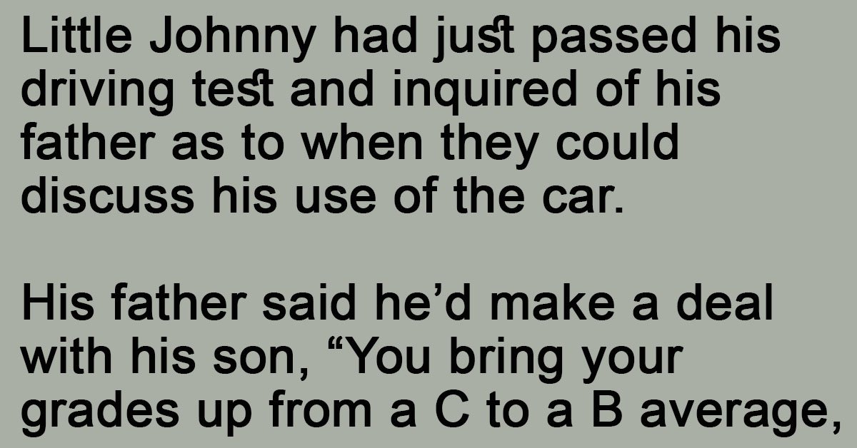 “You bring your grades up from a C to a B average, study your Bible a little, and get your hair cut. Then we’ll talk about the car.”