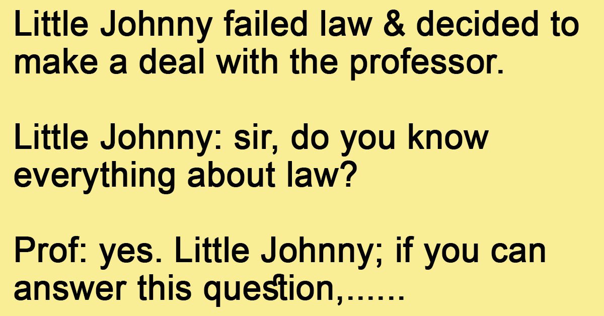 Little Johnny; if you can answer this question, I will accept my final marks, if you can’t, you have to give me ‘A” the professor agreed.