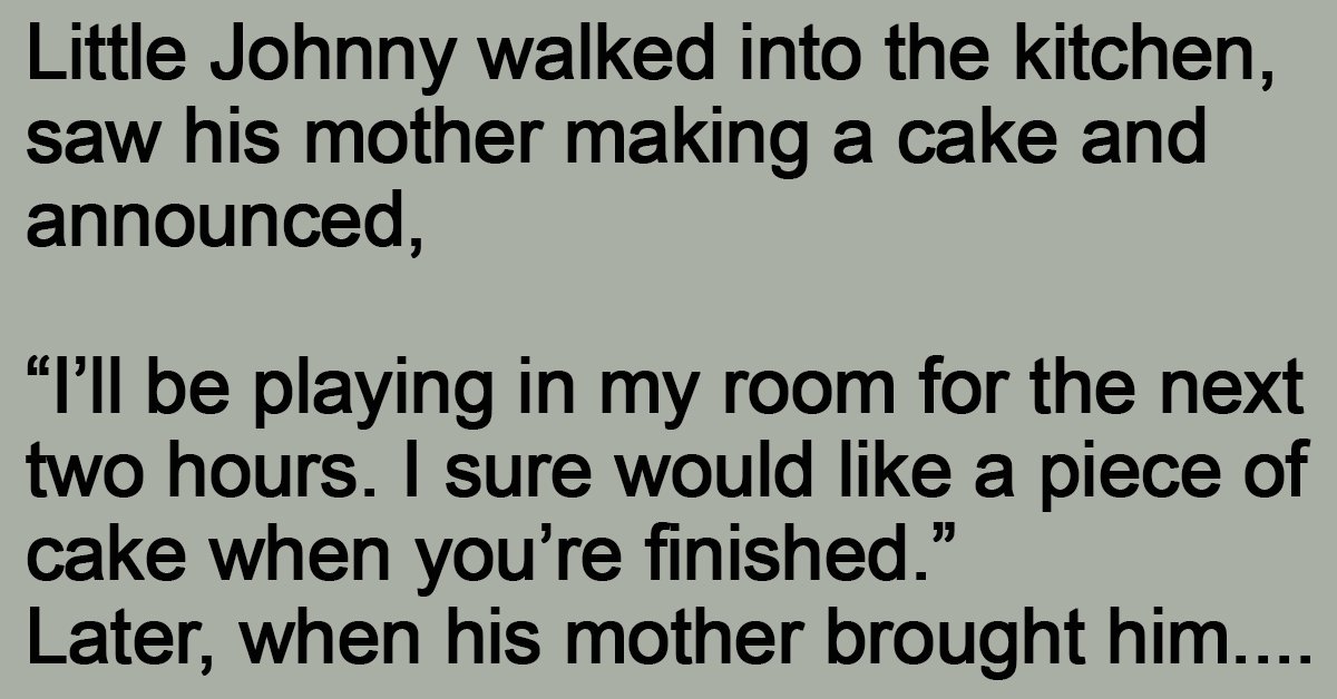 Later, when his mother brought him a piece of cooled cake, Little Johnny exclaimed,