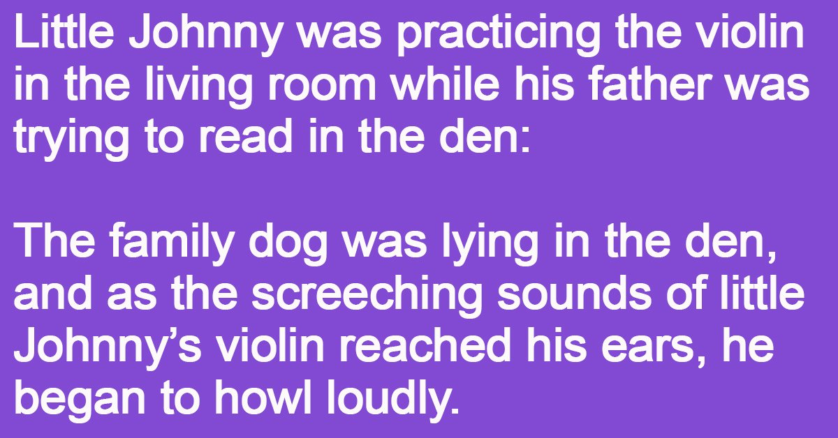 The family dog was lying in the den, and as the screeching sounds of little Johnny’s violin reached his ears, he began to howl loudly.