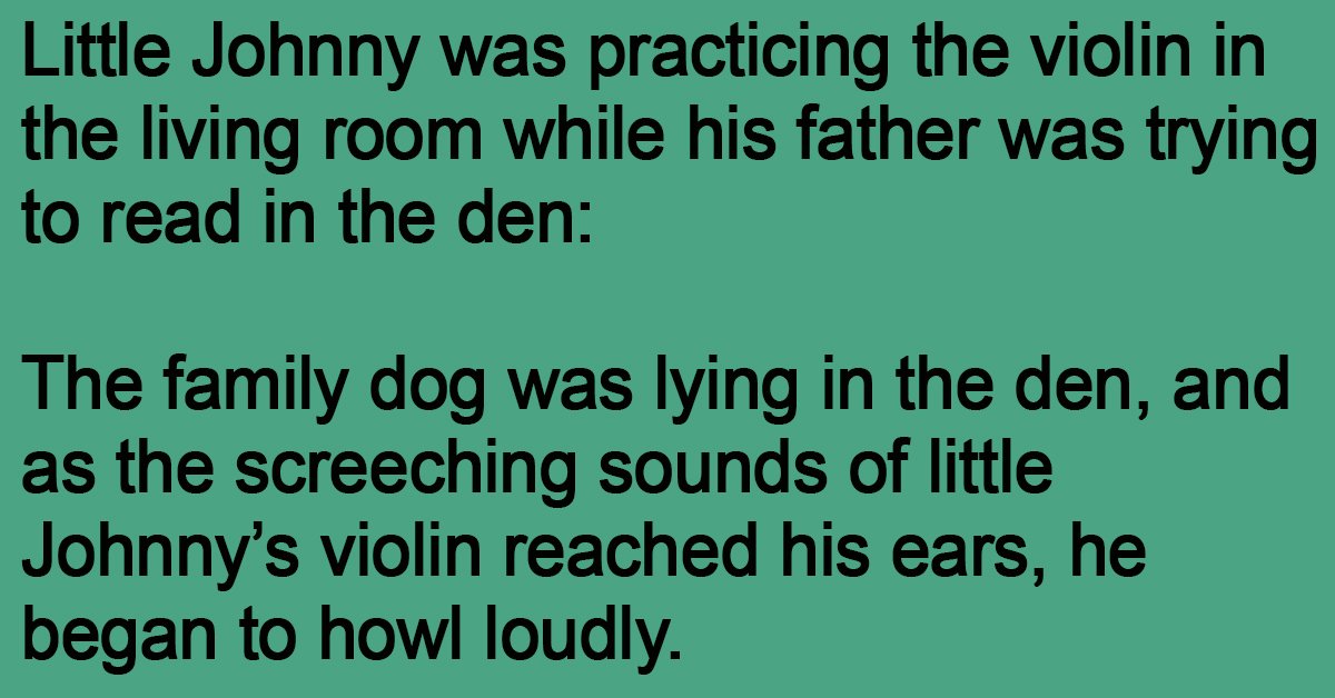 The family dog was lying in the den, and as the screeching sounds of little Johnny’s violin reached his ears, he began to howl loudly.
