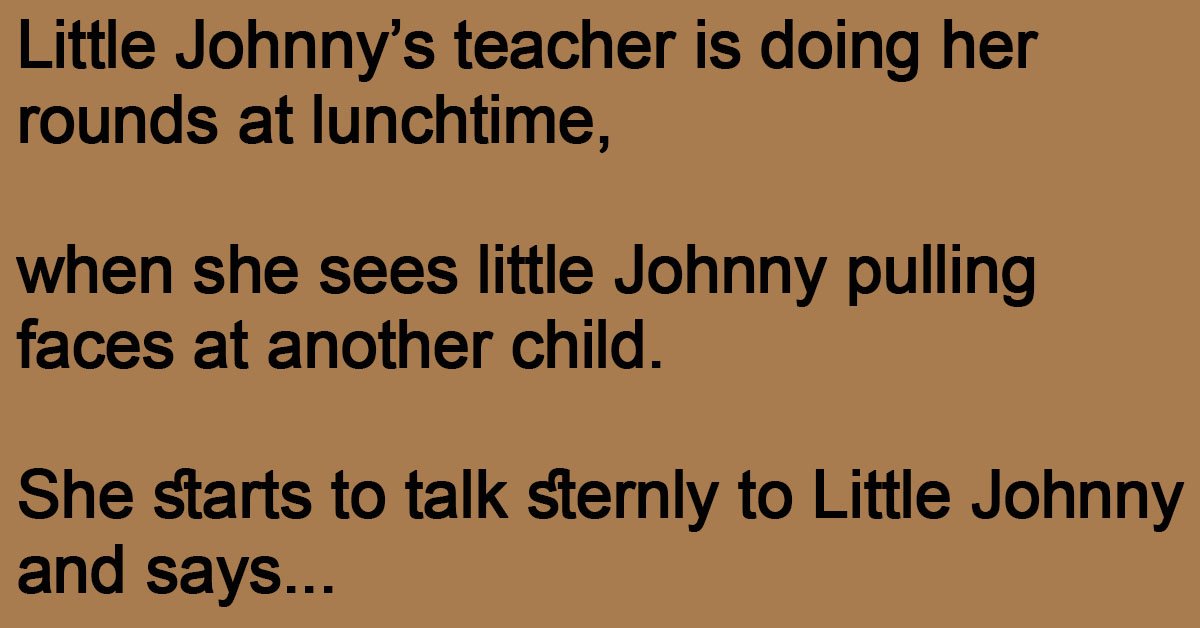 Little Johnny’s teacher is doing her rounds at lunchtime,