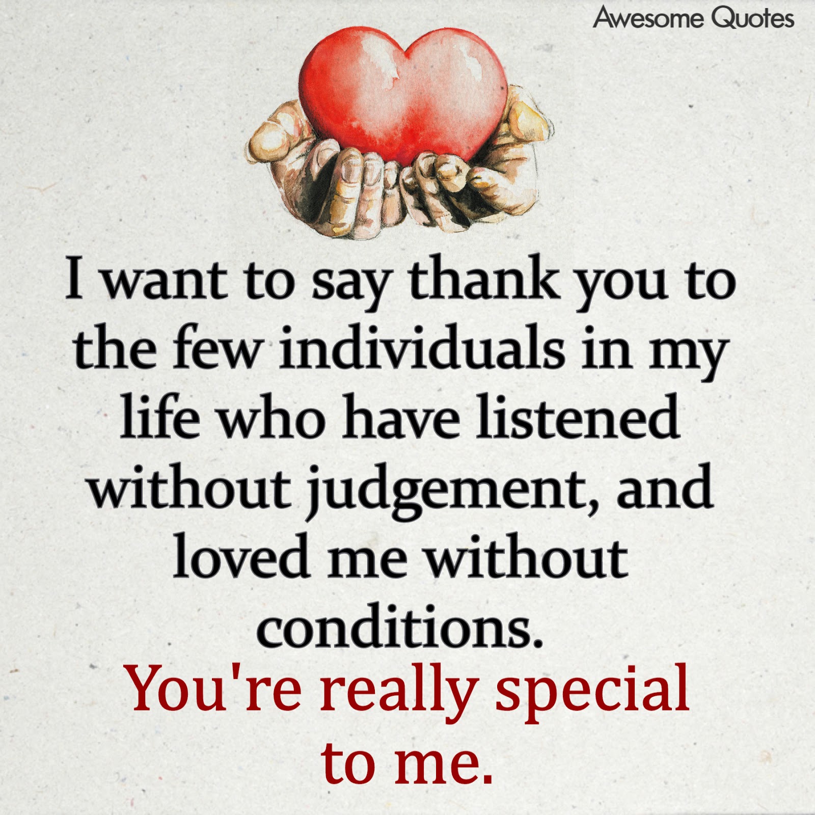 I want to say thank you to the few individuals in my life who have listened without judgement, and loved me without conditions. You’re really special to me.