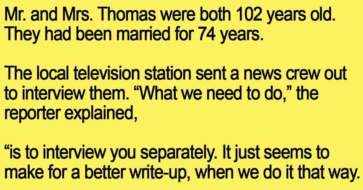 “Mr. Thomas, I know you get tired of people asking you this, but what do you think is the cause of your longevity?”