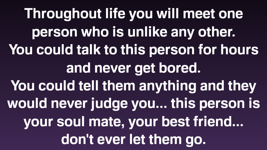 Having someone whom you can say anything, and the person can’t judge you is like having a soul mate; he/ she will always understand whatever that happens. He/ she won’t judge you without weighing both sides.