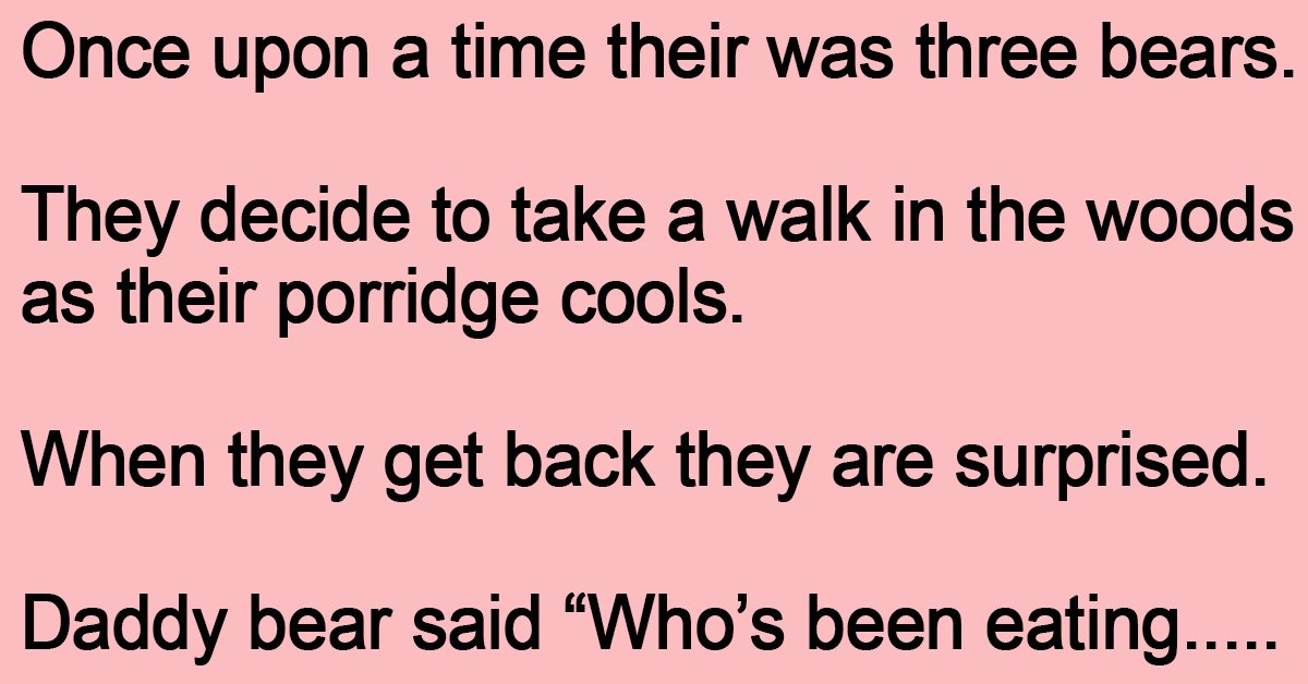 Daddy bear said “Who’s been eating my porridge” Mummy bear said “Who’s been eating my porridge”