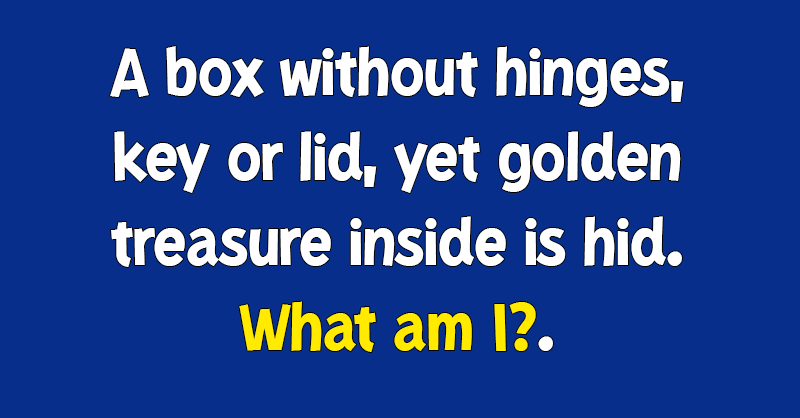 A box without hinges, key or lid, yet golden treasure inside is hid. What am I?.