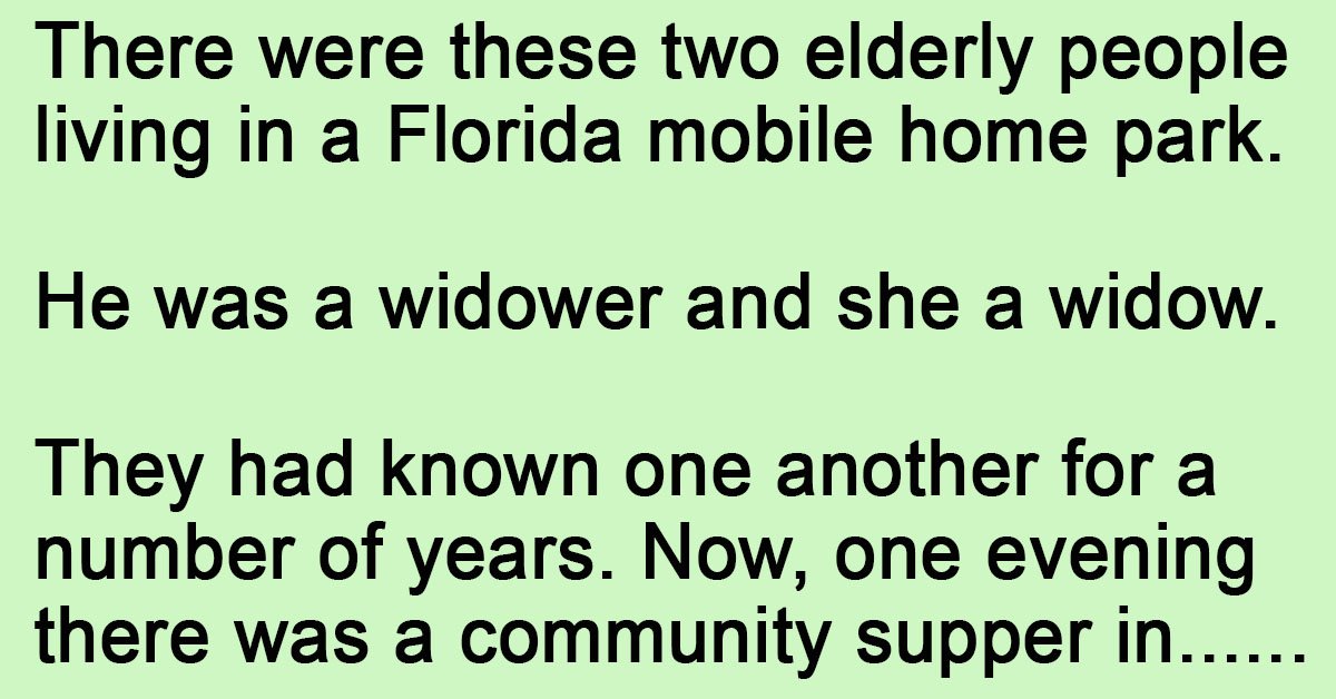 There were these two elderly people living in a Florida mobile home park. He was a widower and she a widow. They had known one another for a number of … …