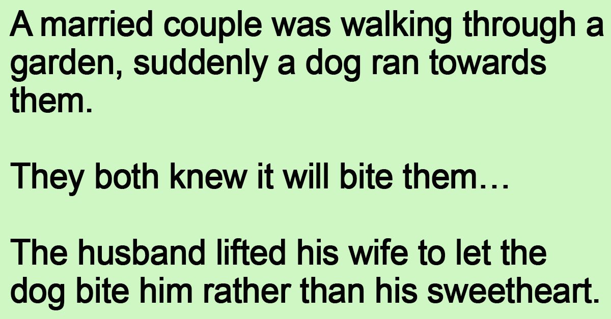 A married couple was walking through a garden, suddenly a dog ran towards them. They both knew it will bite them… The husband lifted his wife to let the dog … …