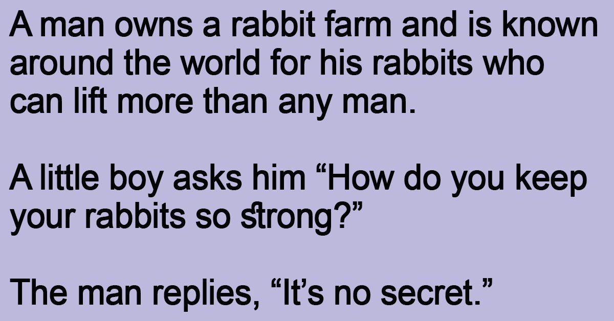 A man owns a rabbit farm and is known around the world for his rabbits who can lift more than any man. A little boy asks him “How do you … …