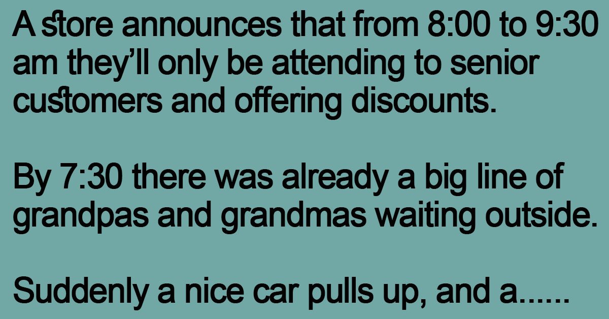 A store announces that from 8:00 to 9:30 am they’ll only be attending to senior customers and offering discounts. By 7:30 there was already a big line of grandpas and … …