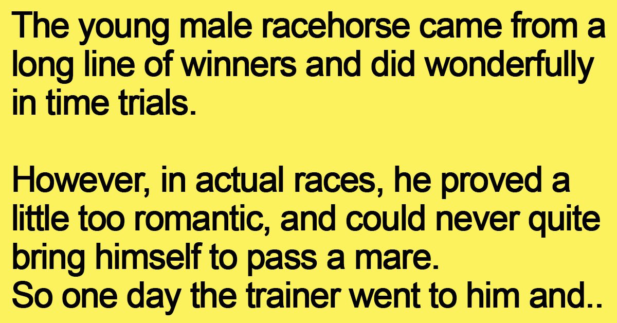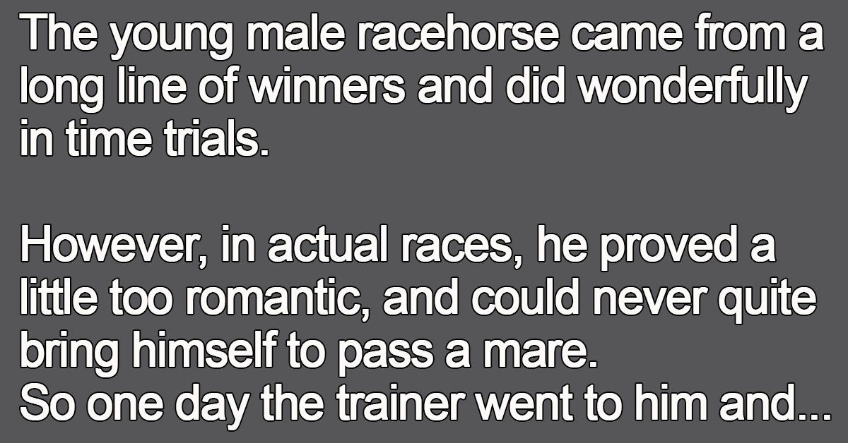 The young male racehorse came from a long line of winners and did wonderfully in time trials. However, in actual races, he proved a little too romantic, and could never … …