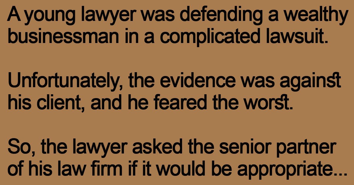 A young lawyer was defending a wealthy businessman in a complicated lawsuit. Unfortunately, the evidence was against his client, and he feared the worst. So, the lawyer asked the senior … …