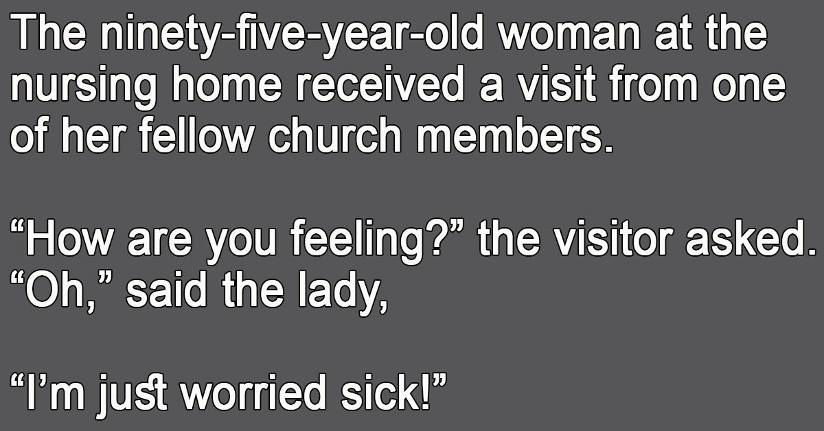 The ninety-five-year-old woman at the nursing home received a visit from one of her fellow church members. “How are you feeling?” the visitor asked. “Oh,” said the lady, “I’m just … …