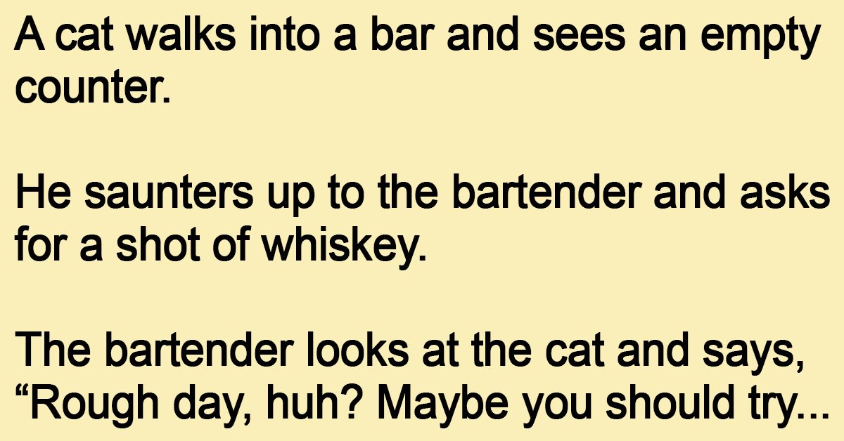 A cat walks into a bar and sees an empty counter. He saunters up to the bartender and asks for a shot of whiskey. The bartender looks at the … …