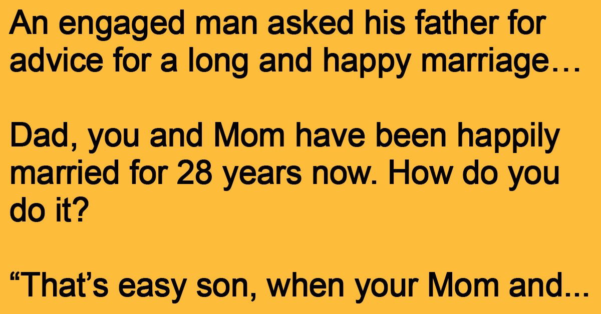 An engaged man asked his father for advice for a long and happy marriage… Dad, you and Mom have been happily married for 28 years now. How do you … …
