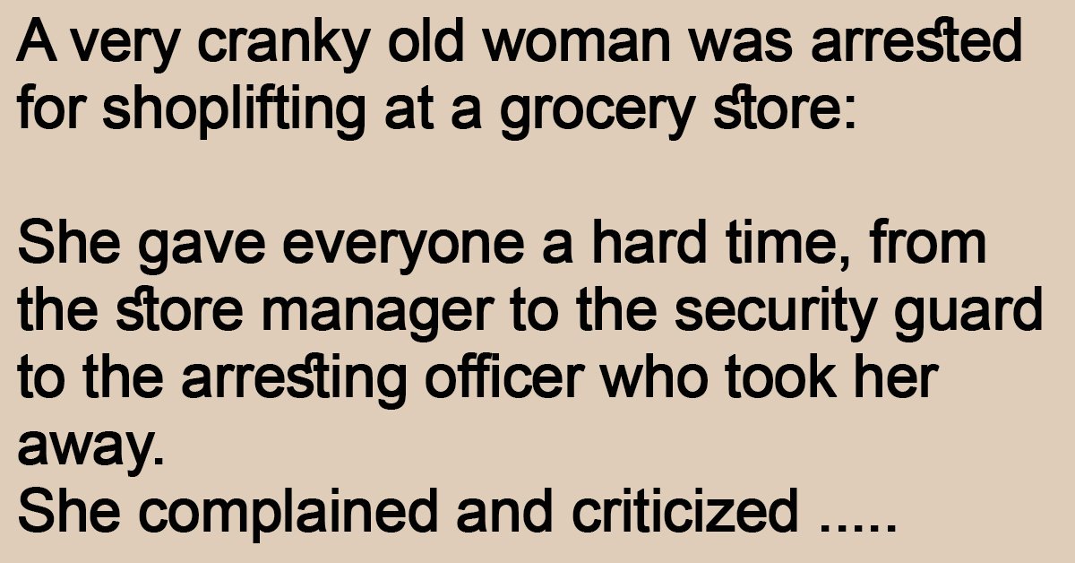 A very cranky old woman was arrested for shoplifting at a grocery store: She gave everyone a hard time, from the store manager to the security guard to the … …