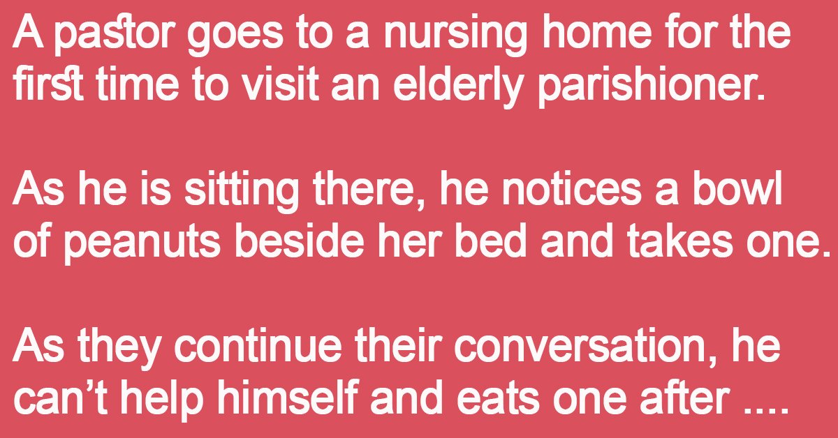 A pastor goes to a nursing home for the first time to visit an elderly parishioner. As he is sitting there, he notices a bowl of peanuts beside her … …
