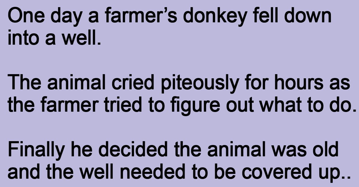 One day a farmer’s donkey fell down into a well. The animal cried piteously for hours as the farmer tried to figure out what to do. Finally he decided the … …
