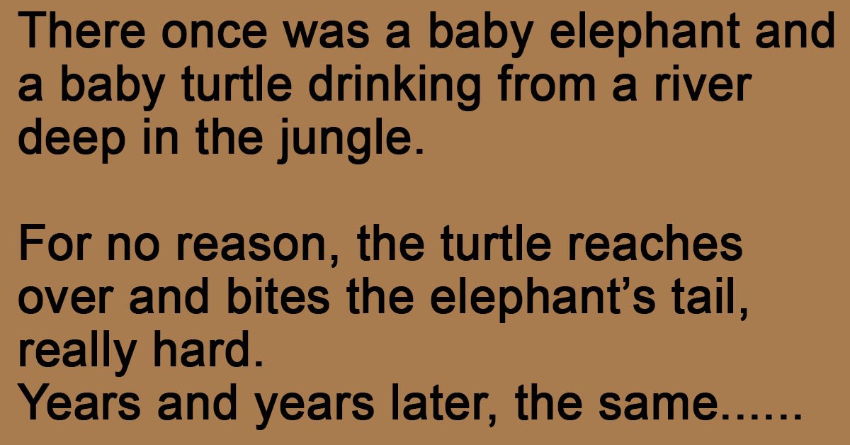 There once was a baby elephant and a baby turtle drinking from a river deep in the jungle. For no reason, the turtle reaches over and bites the elephant’s tail, … …
