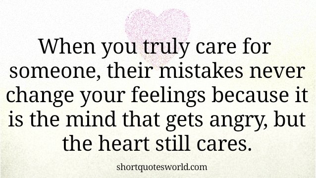 When you truly care for someone, their mistakes never change your feelings because it is the mind that gets angry, but the heart still cares. Mistakes can cost us people, … …
