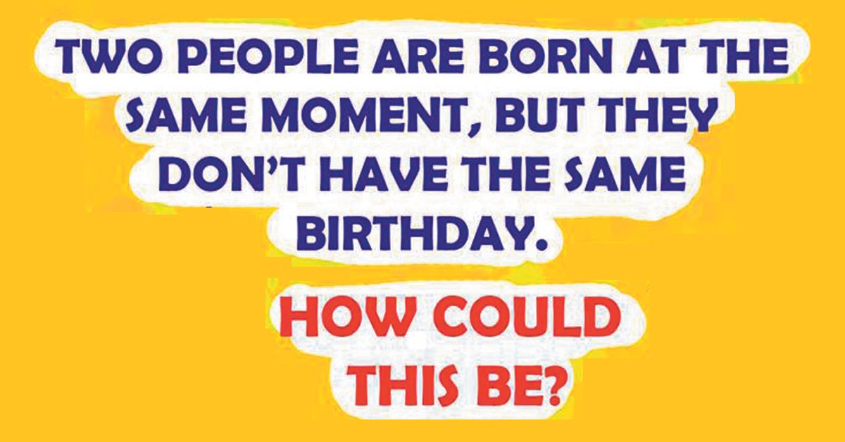 Two people are born at the same moment, but they don’t have the same birthdays. How could this be? This question might sound confusing, but all you need to do … …
