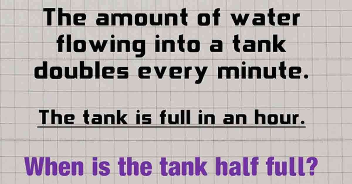 The amount of water flowing into a tank doubles every minute. The tank is full in an hour. When was the tank half full? What is your answer? {“ajaxEndpoint”:”https://wakeupyourmind.net/wp-admin/admin-ajax.php?action=totalpoll”,”behaviours”:{“ajax”:true,”scrollUp”:true,”async”:false},”effects”:{“transition”:”fade”,”duration”:”500″},”i18n”:{“Previous”:”Previous”,”Next”:”Next”,”of”:”of”,”Something went … …