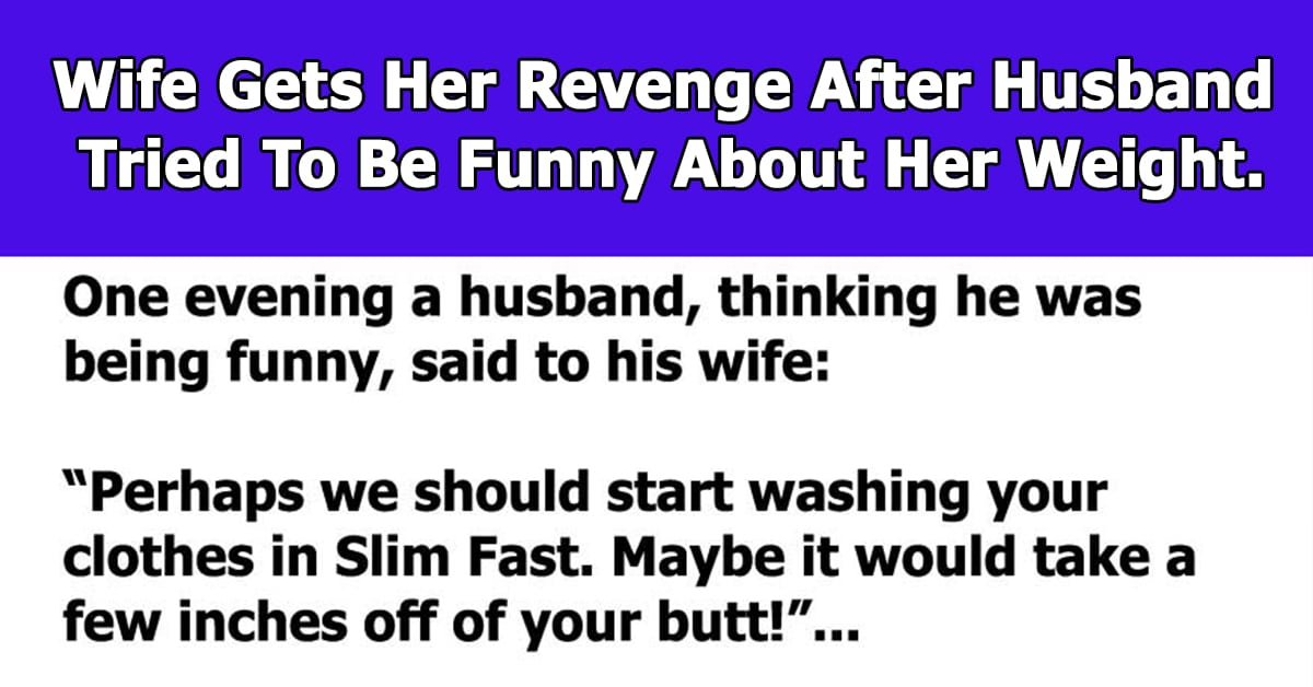 One evening, thinking he was being funny, said to his wife: “Maybe we should start washing your clothes in Slim Fast. Perhaps it would take a few inches off of … …