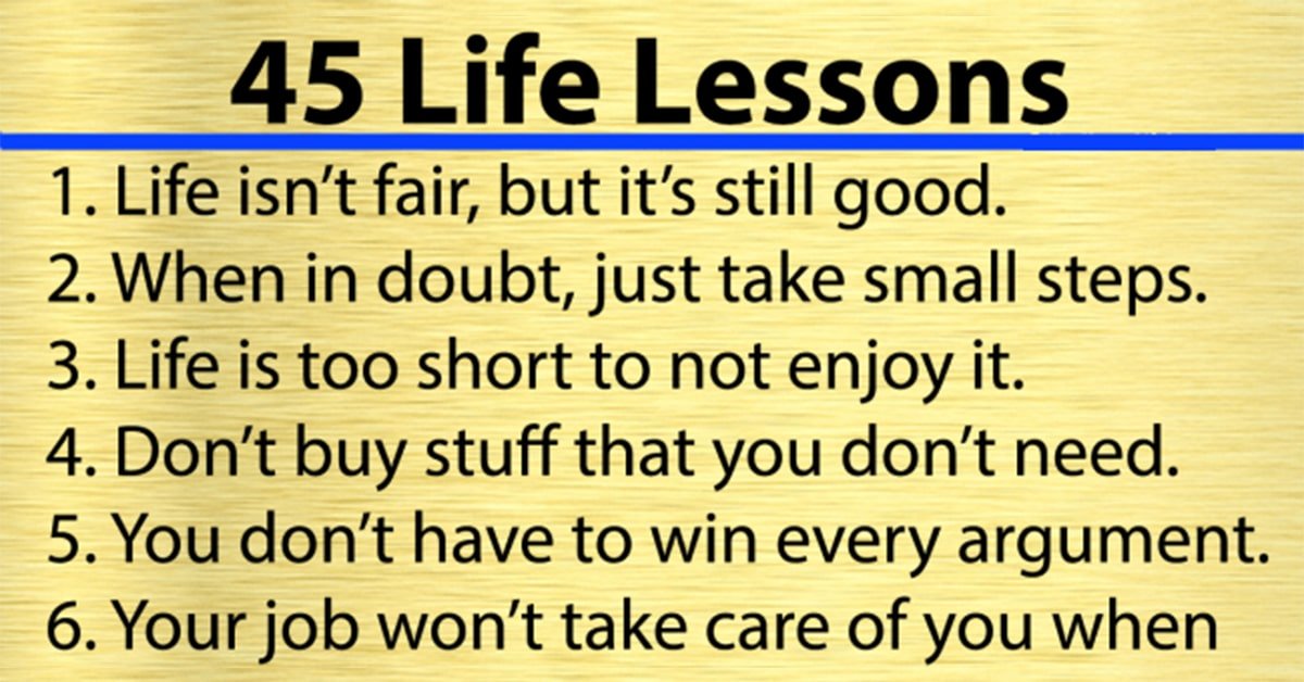 1. Life isn’t fair, but it’s still good. 2. When in doubt, just take the next small step. 3. Life is too short not to enjoy it. 4. Your job … …