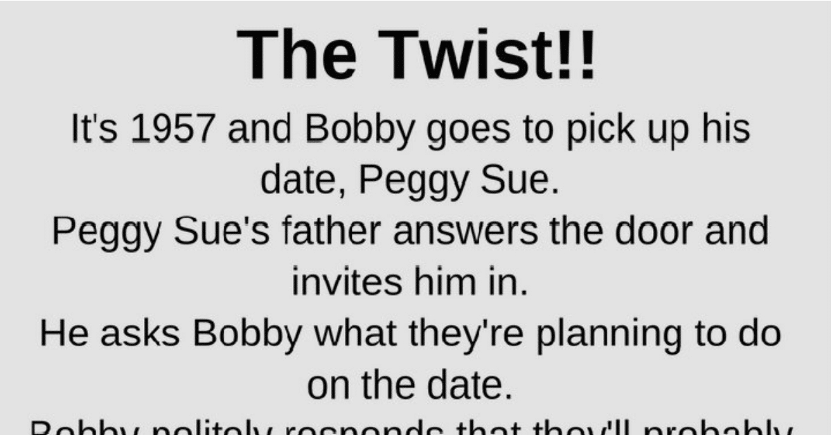 It’s 1957 and Bobby goes to pick up his date, Peggy Sue. Peggy Sue’s father answers the door and invites him in. He asks Bobby what they’re planning to do … …