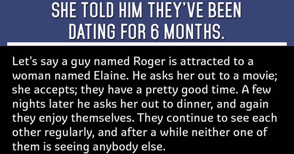 Let’s say a guy named Roger is attracted to a woman named Elaine. He asks her out to a movie; she accepts; they have a pretty good time. A few … …