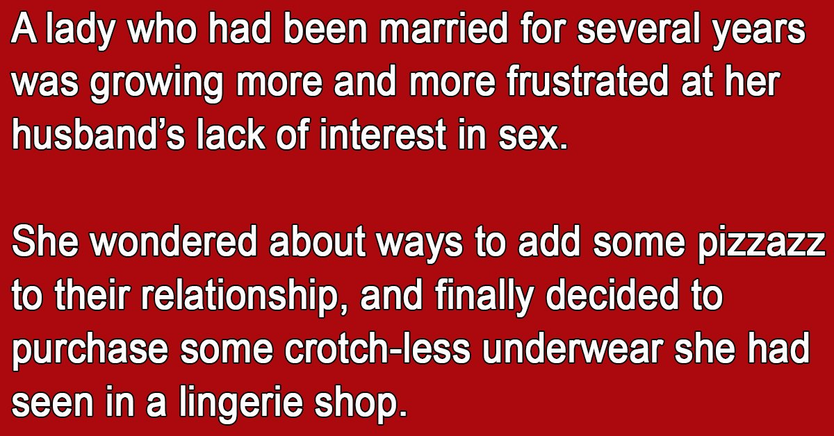 A lady who had been married for several years was growing more and more frustrated at her husband’s lack of interest in sex. She wondered about ways to add some … …