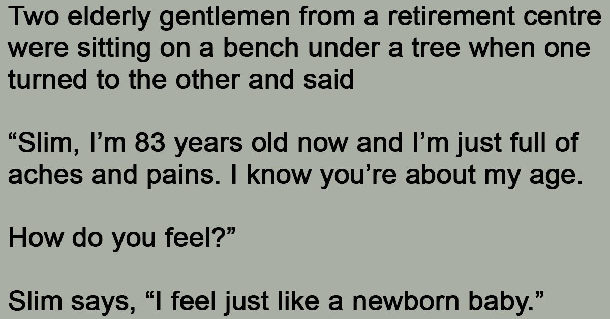 Two elderly gentlemen from a retirement centre were sitting on a bench under a tree when one turned to the other and said “Slim, I’m 83 years old now and … …