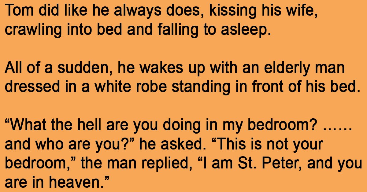 Tom did like he always does, kissing his wife, crawling into bed and falling to asleep. All of a sudden, he wakes up with an elderly man dressed in a … …