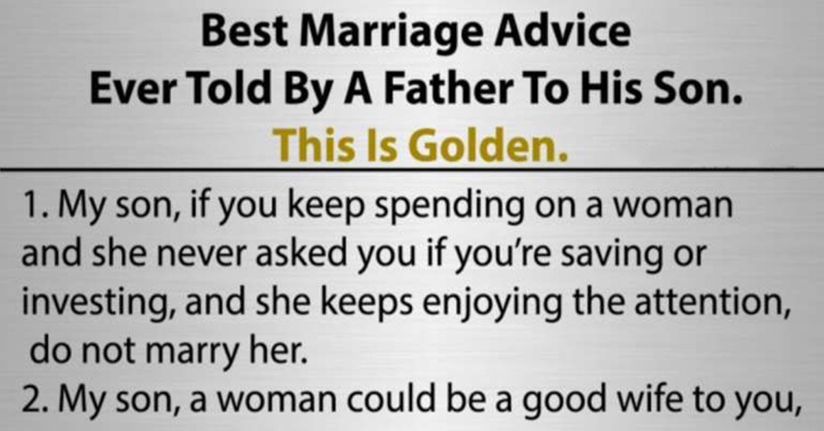 Here’re some sweet things to do for your woman when you get married: 1. My son, if you keep spending on a woman and she never asked you if you’re … …