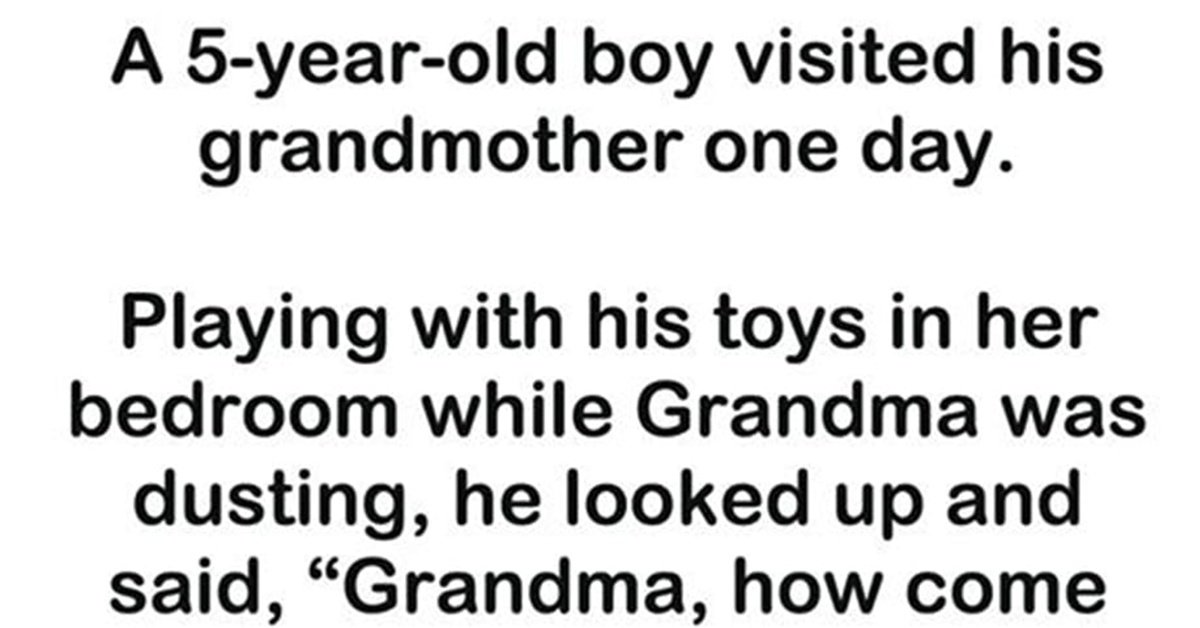 A 5-year-old boy visited his grandmother one day. Playing with his toys in his room while Grandma was dusting, he looked up and said, “Grandma, why don’t you have a … …