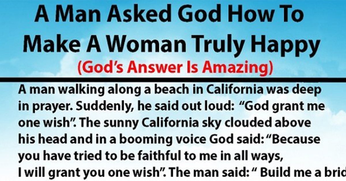 A man walking along a beach in California was deep in prayer. Suddenly, he said out loud: “God grant me one wish”. The sunny California sky clouded above his head … …