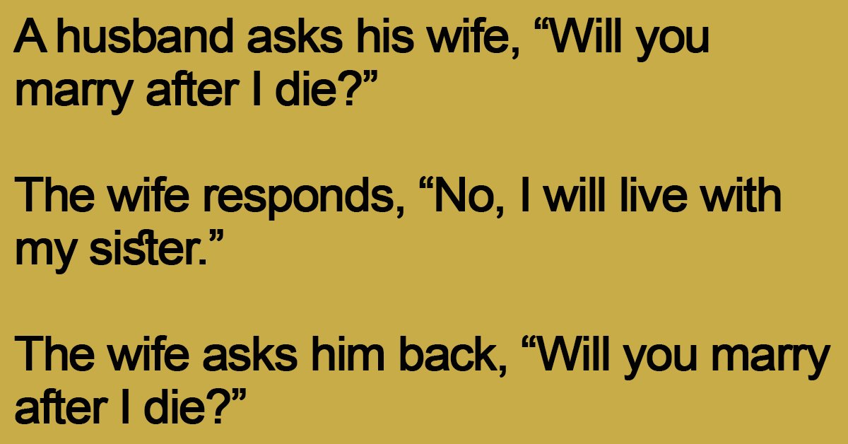A husband asks his wife, “Will you marry after I die?” The wife responds, “No, I will live with my sister.” The wife asks him back, “Will you marry … …
