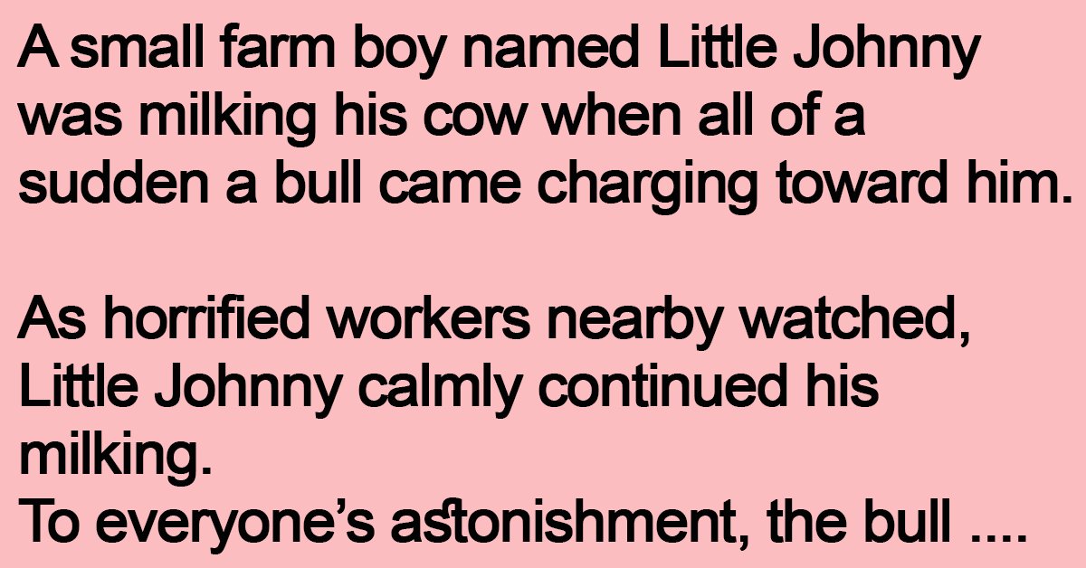 A small farm boy named Little Johnny was milking his cow when all of a sudden a bull came charging toward him. As horrified workers nearby watched, Little Johnny … …