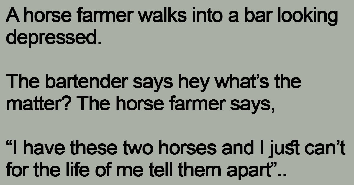 A horse farmer walks into a bar looking depressed. The bartender says hey what’s the matter? The horse farmer says “I have these two horses and I just can’t … …