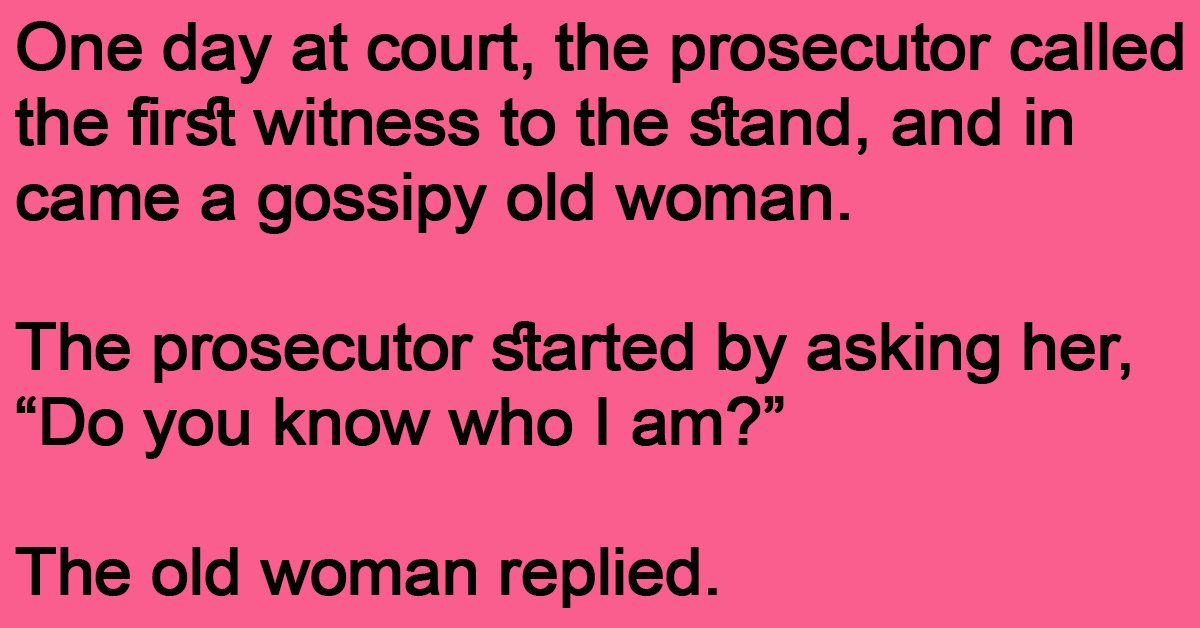 One day at court, the prosecutor called the first witness to the stand, and in came a gossipy old woman. The prosecutor started by asking her, “Do you know … …