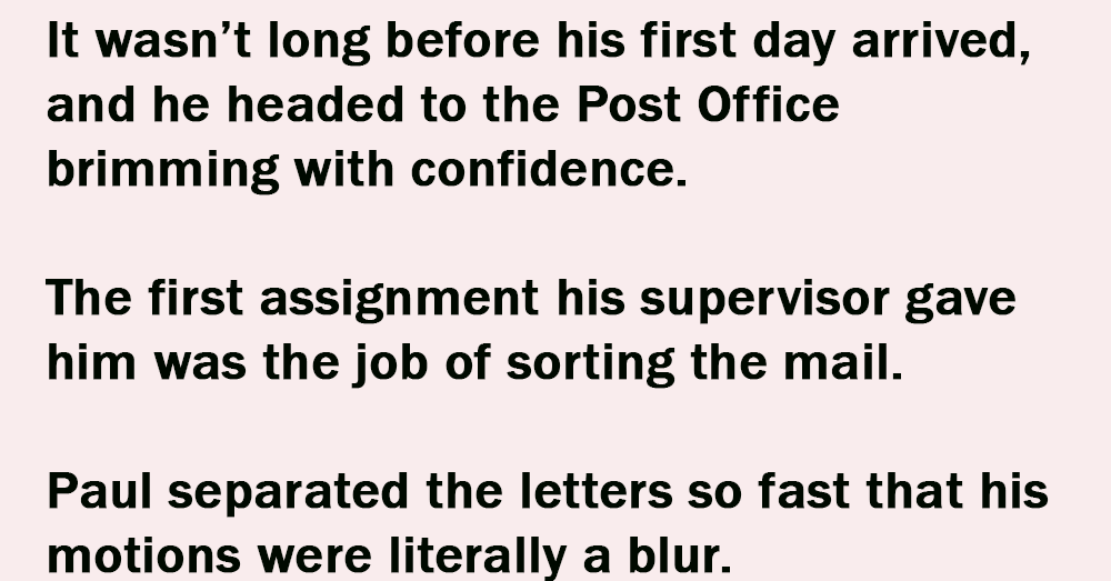 It wasn’t long before his first day arrived, and he headed to the Post Office brimming with confidence.