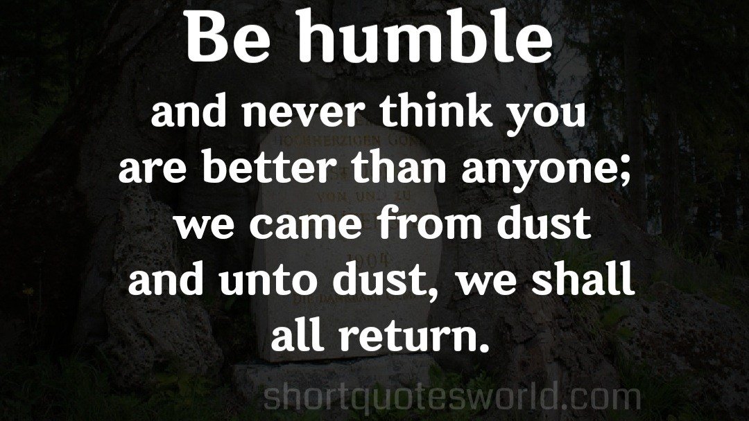 Be humble and never think you are better than anyone; we came from dust and unto dust, we shall all return.