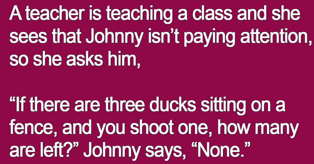“If there are three ducks sitting on a fence, and you shoot one, how many are left?”