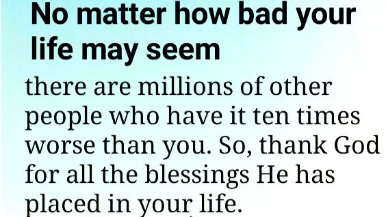 No matter how bad your life may seem, there are millions of other people who have it ten times worse than you. So, thank God for all the blessings he has placed in your life.