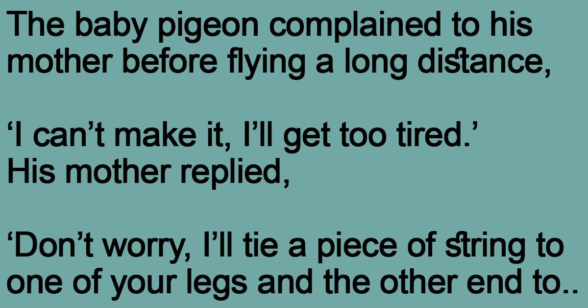 ‘Don’t worry, I’ll tie a piece of string to one of your legs and the other end to mine.’