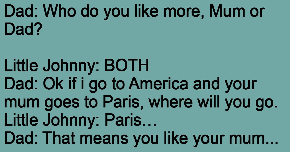 Dad: Ok if i go to Paris and your mum goes to America ,where will you go?