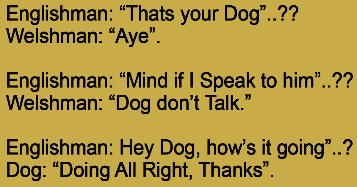 Englishman: “Is this your Owner”..?? (Pointing to the Welshman).