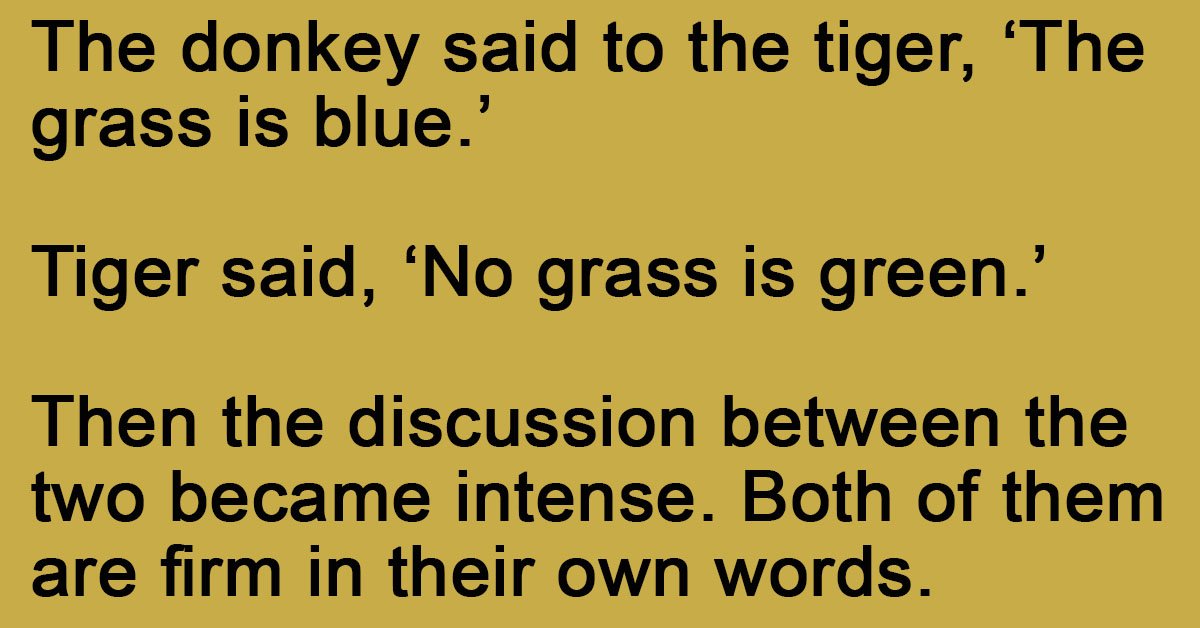 “you did not get punished for the grass being blue Or green. You have been punished for debating with that stupid donkey. Brave and intelligent creatures like you have argued with a donkey and have come here to get a decision”